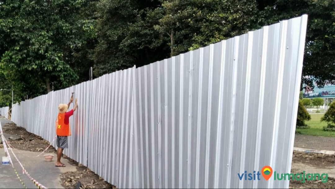 Alun-alun Lumajang kini memasuki tahap awal proyek rehabilitasi. Pekerjaan difokuskan pada pengamanan area dan penataan lahan sebagai dasar pembangunan.