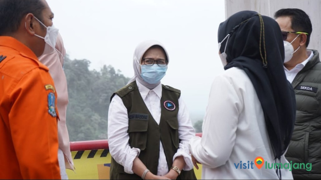Bupati Indah Amperawati di Jembatan Besuk Kobokan pasca erupsi Semeru. Foto: Visit LumajangBupati Lumajang, Indah Amperawati (Bunda Indah), memaparkan kondisi kerusakan infrastruktur akibat erupsi Gunung Semeru dan curah hujan tinggi kepada Timwas Penanganan Bencana DPR RI di Pendopo Arya Wiraraja.