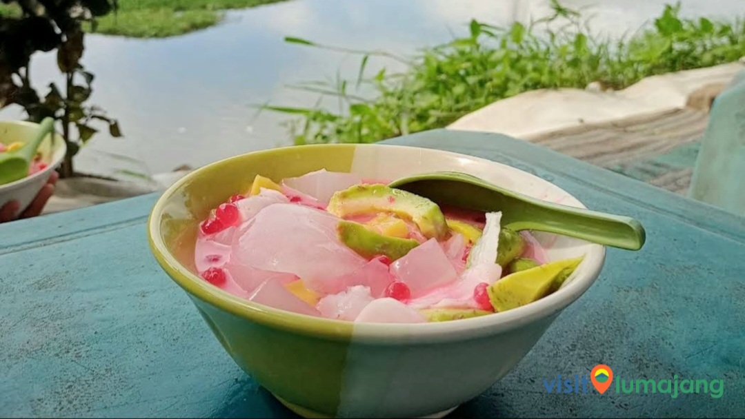Nikmatnya es campur di tepian Kali Asem. Foto: Dok. Visit LumajangBuat Visiters yang bosen dengan suasana makan di tempat yang gitu-gitu aja, gimana kalau makan sambil lihat pemandangan sungai dan jembatan?