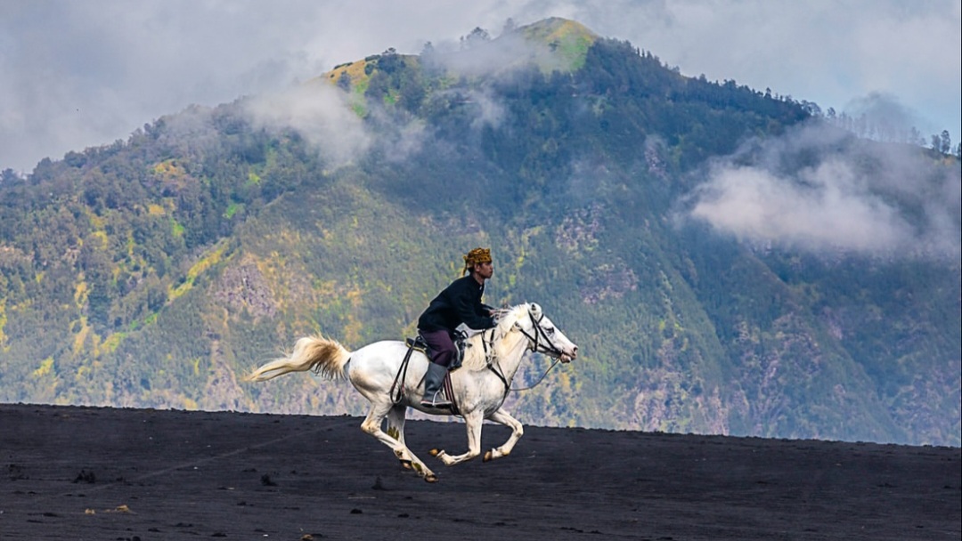 Jika ingin merasakan sensasi berbeda, Visiters bisa menunggangi kuda untuk menyusuri lautan pasir menuju kawah Bromo atau menjelajah padang savana.