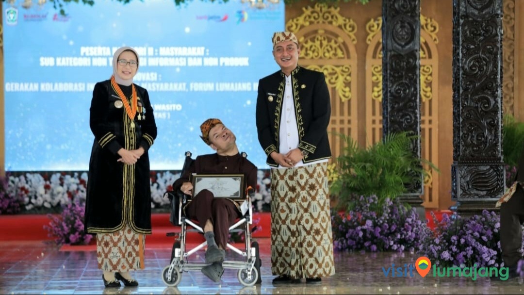 Hadi Wasito saat menerima penghargaan dari Bupati dan Wakil Bupati Lumajang (15/12). Foto: Visit LumajangPeran Aktif Komunitas Disabilitas di Kabupaten Lumajang