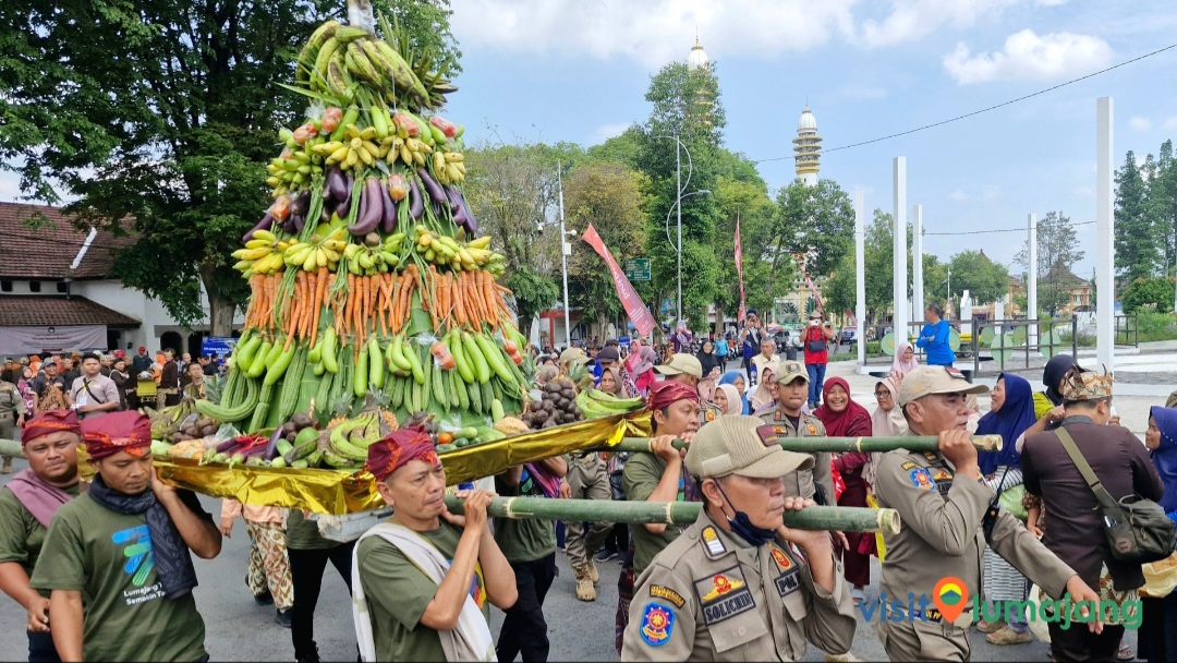 Gunungan hasil bumi di Harjalu 770 (15/12). Foto: Visit LumajangMisi Astacita Nararya Bupati Lumajang Indah Amperawati