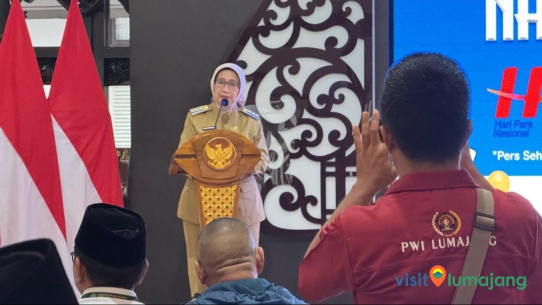 Bupati Lumajang Bunda Indah saat sambutan HPN 2026 (09/02). Foto: Visit LumajangSinergi Pers dan Pemkab Lumajang