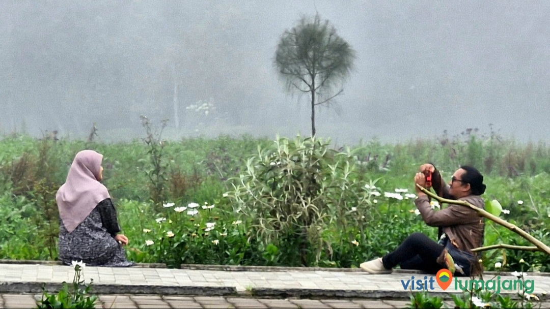 Pengunjung berfoto di tepi danau Ranu Pane. Foto: Visit LumajangHarmoni Budaya Suku Tengger di Kabupaten Lumajang