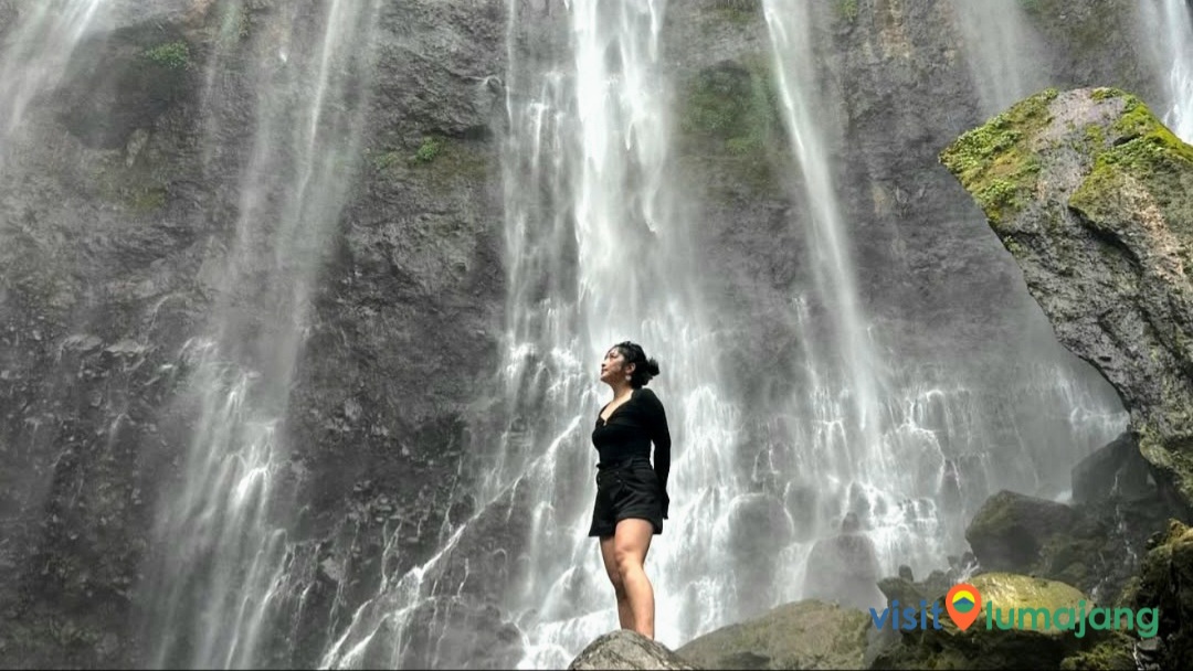 Wisatawan di dasar air terjun Tumpak Sewu Pronojiwo Lumajang. Foto: IstimewaKuliner Lumajang Sekitar Air Terjun Tumpaksewu Pronojiwo